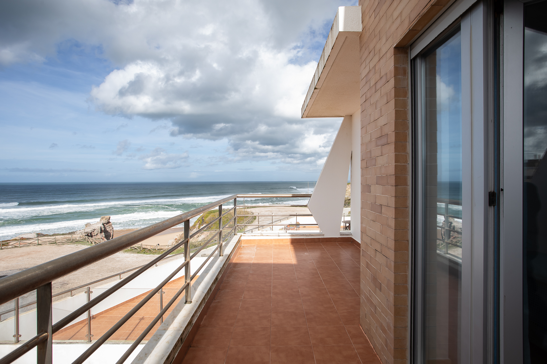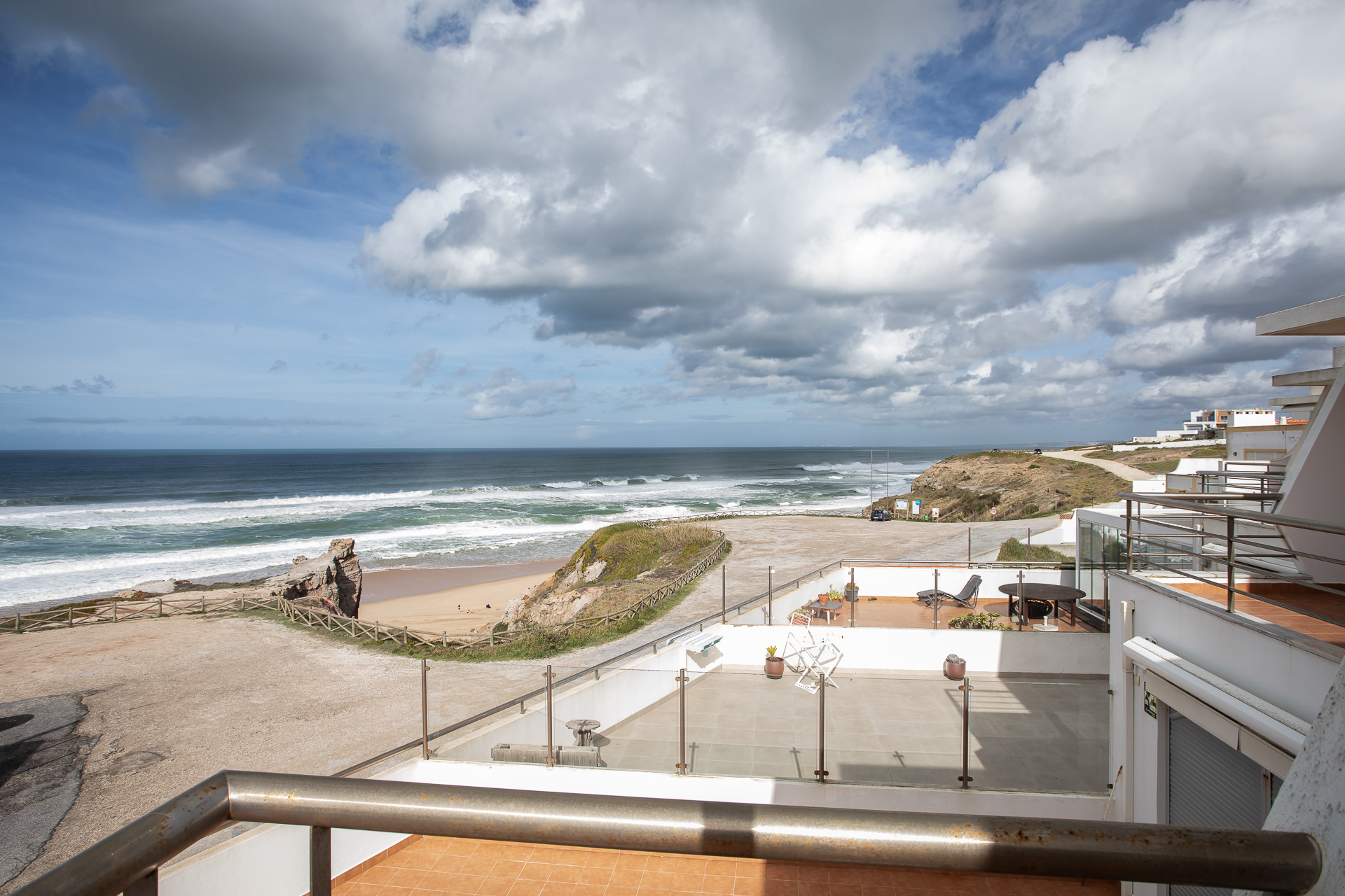 Nesta moradia T3, situada em primeira linha de mar na Praia de Santa Cruz, o Atlântico não é um cenário distante — é presença constante, som de fundo, horizonte diário.