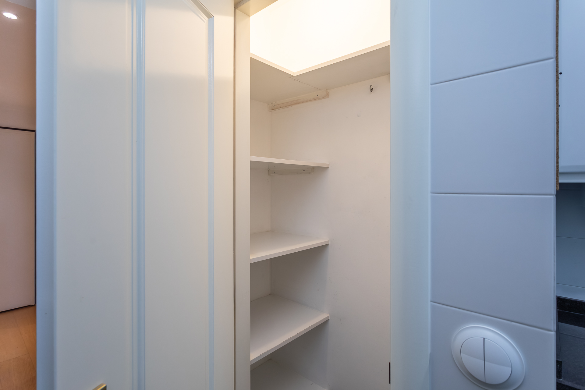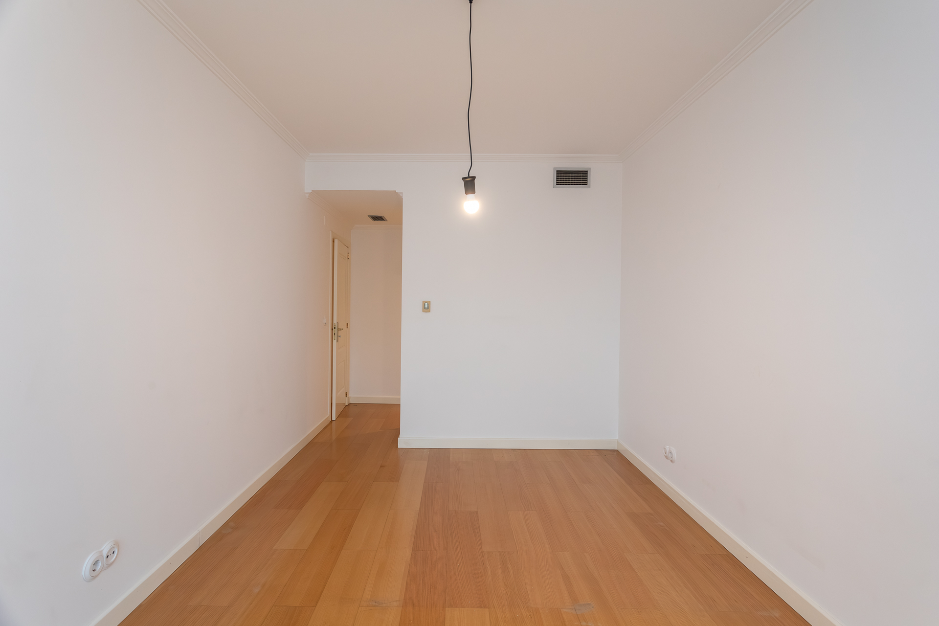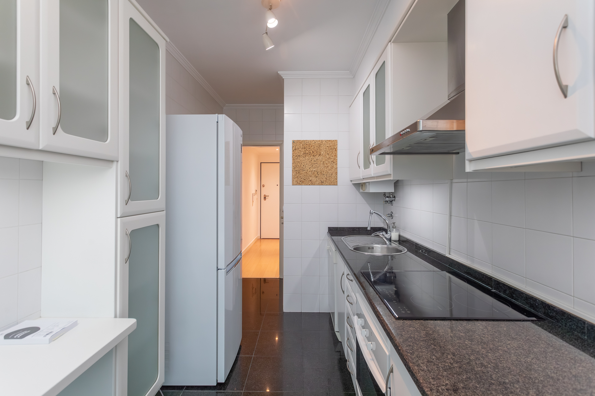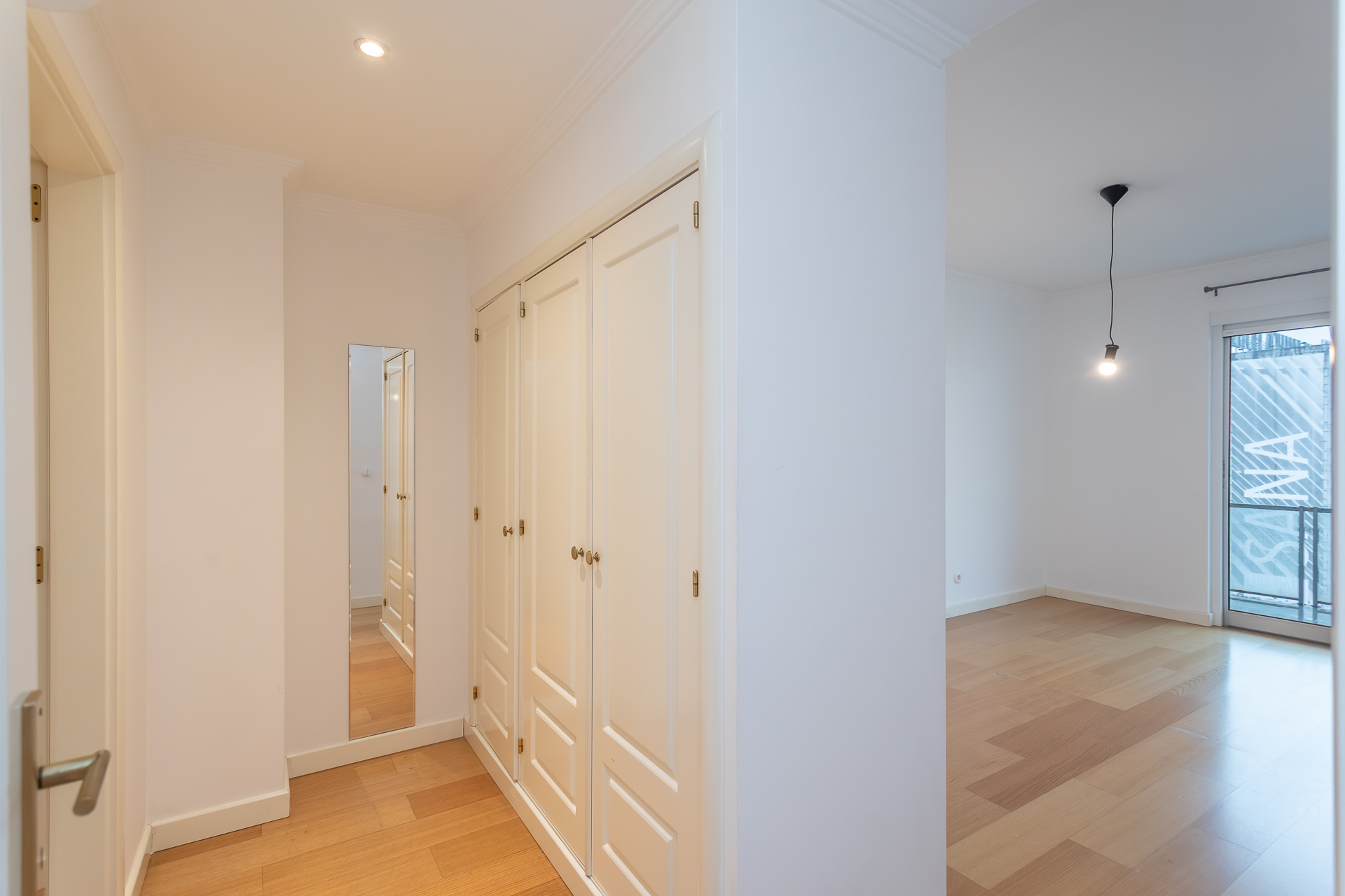 Este T1, situado num andar alto e orientado a poente, beneficia de luminosidade constante ao longo da tarde e vista desafogada sobre a cidade. A varanda generosa acompanha todo o apartamento — da sala ao quarto e à cozinha —, criando uma ligação fluida entre interior e exterior e ampliando naturalmente a sensação de espaço.