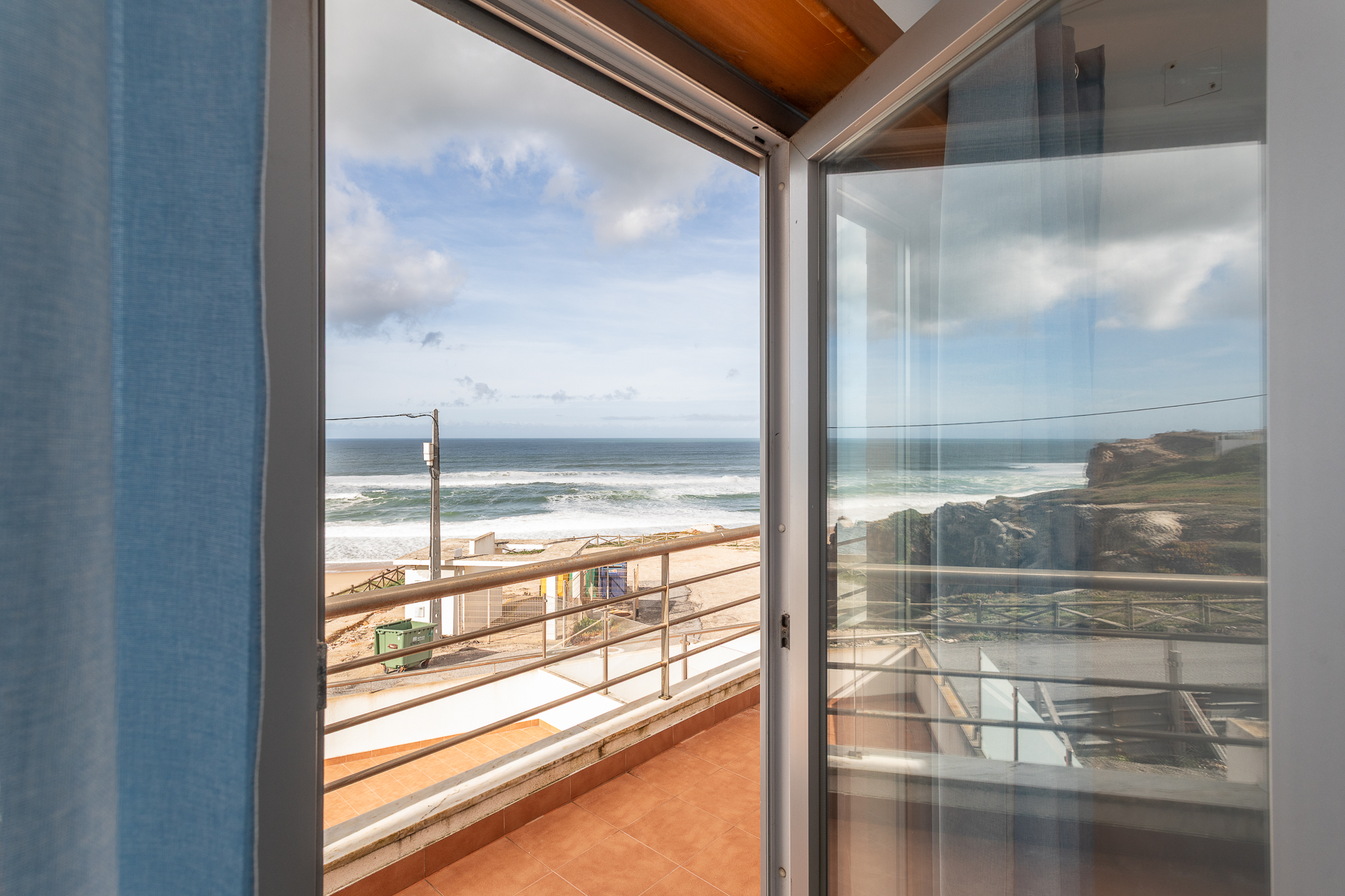 Nesta moradia T3, situada em primeira linha de mar na Praia de Santa Cruz, o Atlântico não é um cenário distante — é presença constante, som de fundo, horizonte diário.